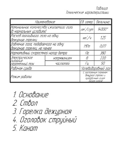 3. Расчеты факельной системы, выбор типа и материала факельного оголовка, климатического исполнения, системы розжига и контроля, диаметр и высота входного патрубка факельного ствола выполняются для каждого конкретного объекта в соответствии с исходными данными по опросному листу и согласовываются с заказчиком;